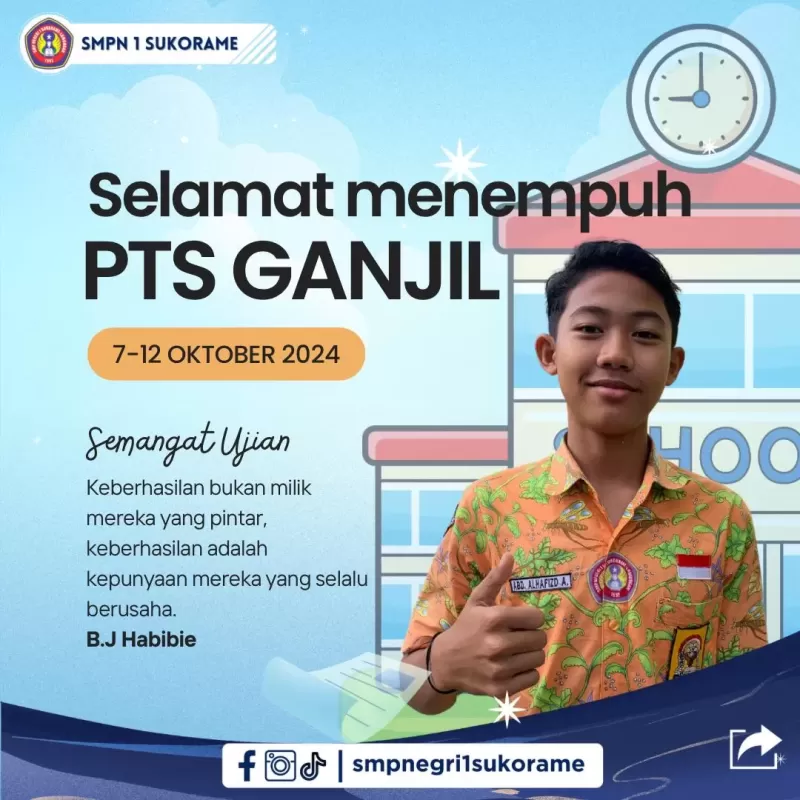 Jadwal mata pelajaran penilaian tengah semester ganjil SMP Negeri 1 Sukorame tahun pelajaran 2023/2024 sebagai berikut:
